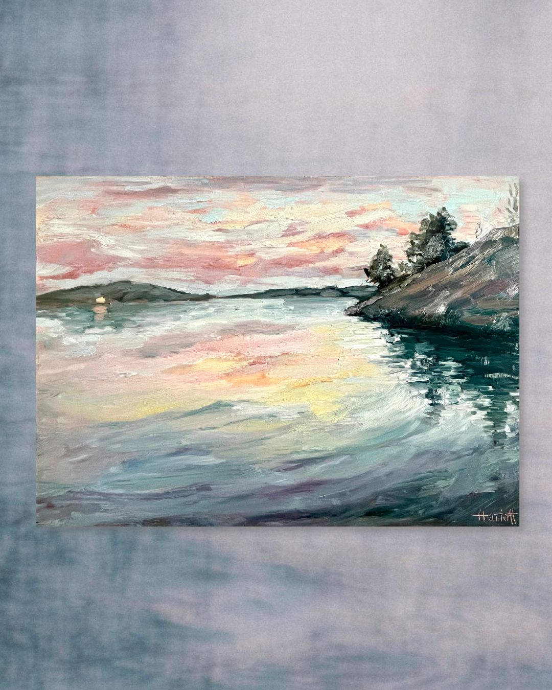 Herriott’s paintings are characterized by visible brushstrokes, vibrant colors, dynamic compositions, and scenes that convey shifting light and movement. Her style draws influence from Impressionism, Post-impressionism and Canadian landscape artists such as Tom Thomson and the Group of Seven, who sought to express the evolving landscape and spirit of Canada’s wilderness through emotional resonance. Herriott frequently paints outdoors on small panels, working rapidly to capture the essence of a location before developing these studies into larger works in her studio.